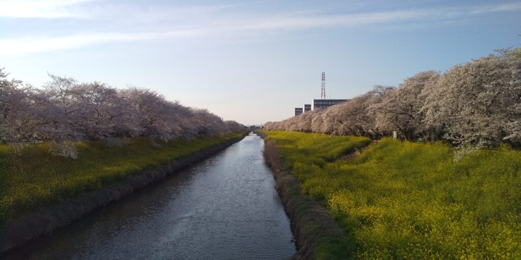 やはり、青毛堀の両岸の菜の花畑とのコントラスト